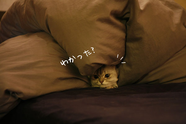 真顔で包まっているパールくん、なんて可愛いんでしょう (>∀<)