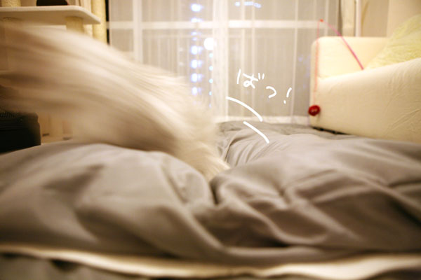 ふかふかのお布団でテンションも㊤ったちゃいましたね^^パール君可愛~♪