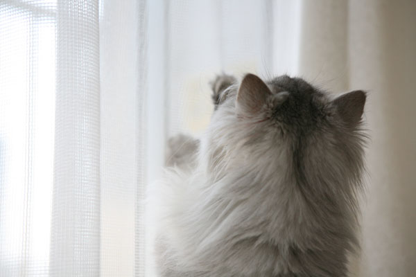 引っ越し前の家ではよくカーテンにのぼってたけど