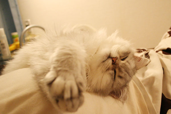 パールが寝ているところをなでなでしようと手を出したら・・・