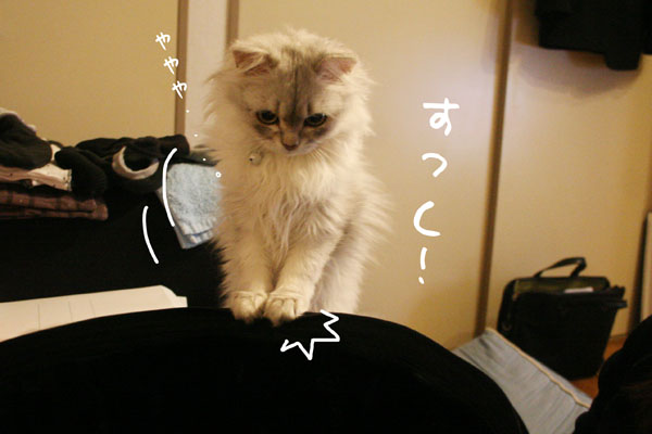 今日もいつものようにベッドの上の暖かい場所へ