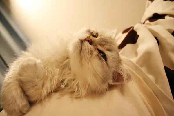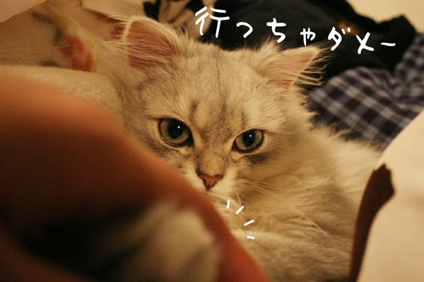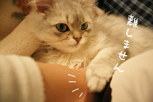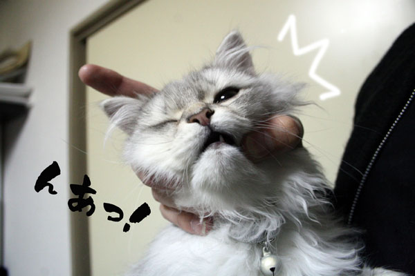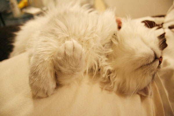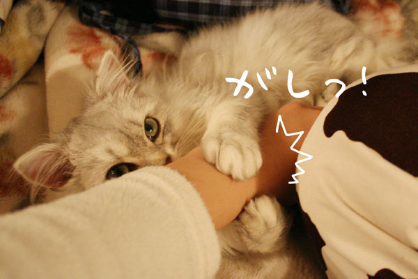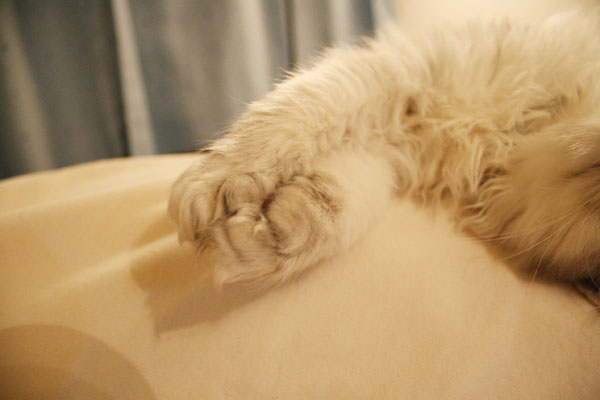 そ〜っと引き抜こうとすると 猫キック をくらいます