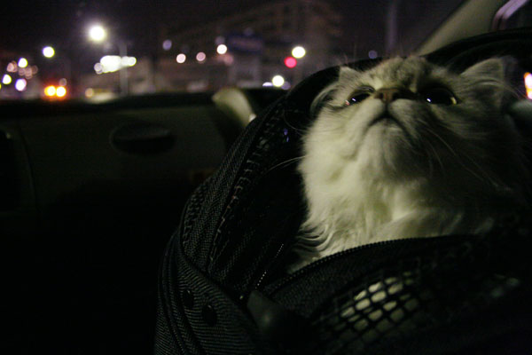 買ったばかりの『Sleepypod』に入ってご一緒しました