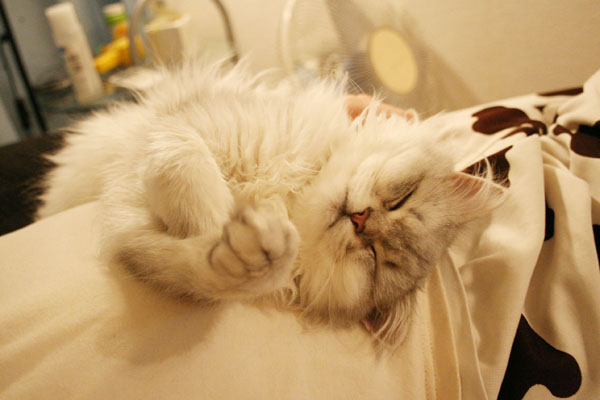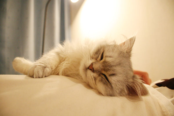 パールが寝ているところをなでなでしようと手を出したら・・・