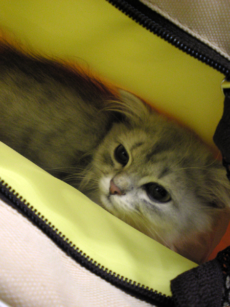 子猫ちゃんはやっと狭いバッグから解放され、まずはお家探検