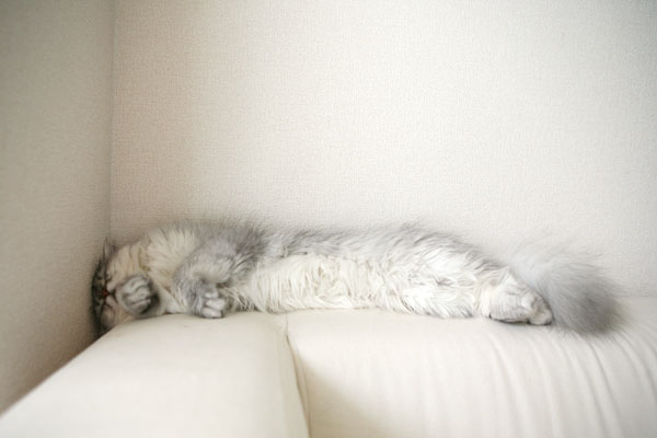 また壁とソファーに挟まってるよー(よく挟まって寝ます→過去記事)